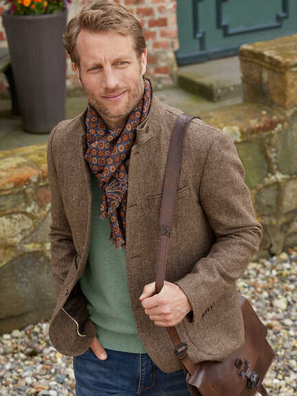 Vom klassischen Tweedsakko bis zur robusten Tweedjacke, hier findet Mann das passende Kleidungsstück aus original englischem Tweed. Die Spanne reicht vom Yorkshire-Tweed mit feinem Überkaro, irischem Tweed im authentischen Look mit den charakteristischen Donegal Flecks bis hin zum robusten schottischem Tweed aus Harris. Sie haben die Wahl.